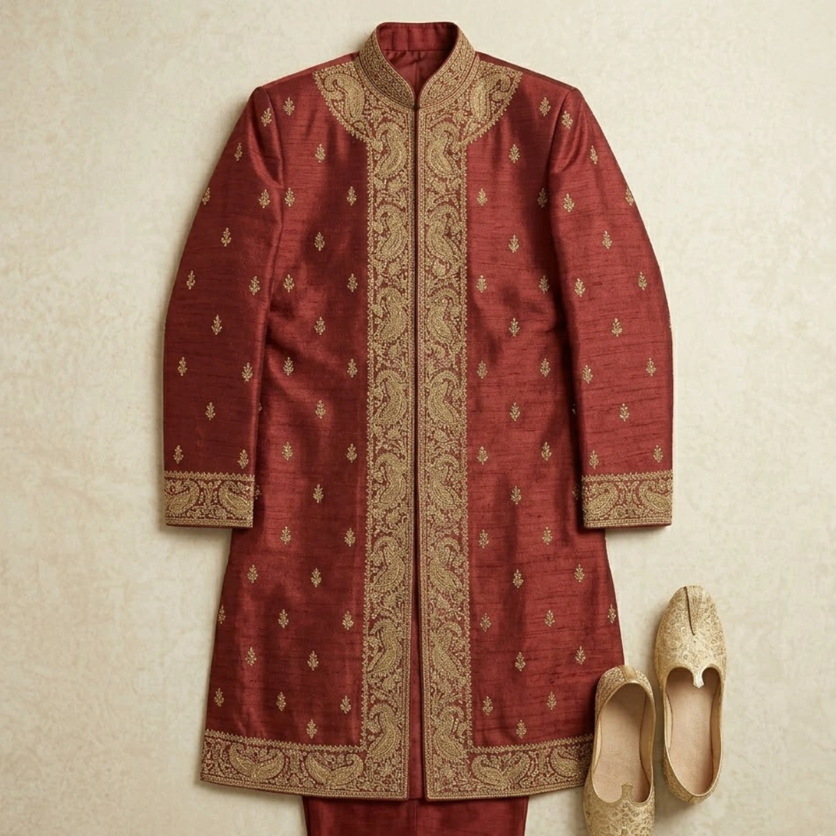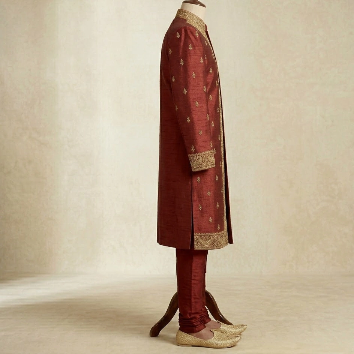 Maroon Wedding Sherwani SetMaroon Wedding Sherwani Set
